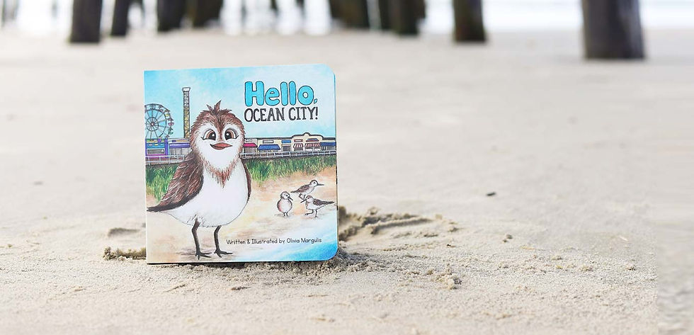 I wrote and illustrated the children's book, "Hello, Ocean City!". This is a book that takes young readers on an illustrated journey through the beloved shore town of Ocean City, New Jersey. The story follows Pip the Sandpiper who is searching for her Grammy while exploring the town’s iconic landmarks, local businesses, and beachside attractions. The book teaches resilience even when things get tough and highlights well-known spots in Ocean City, making it a nostalgic and engaging read for both visitors, locals, and kids.